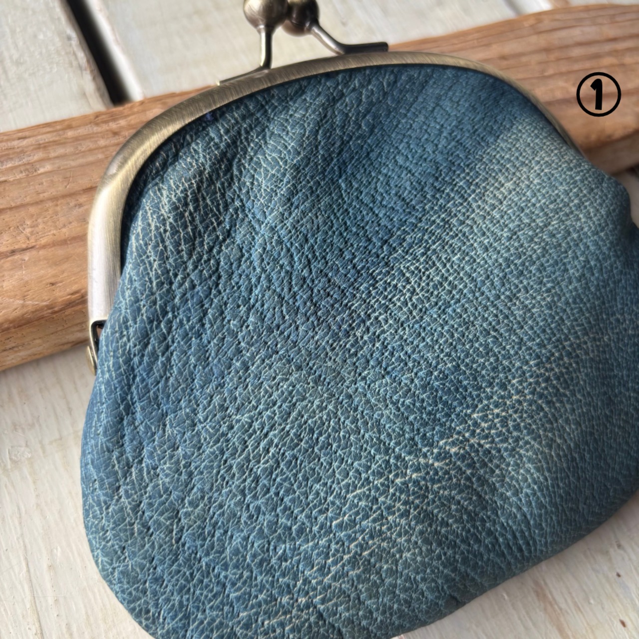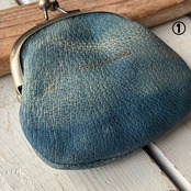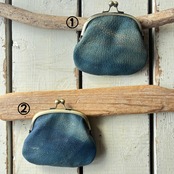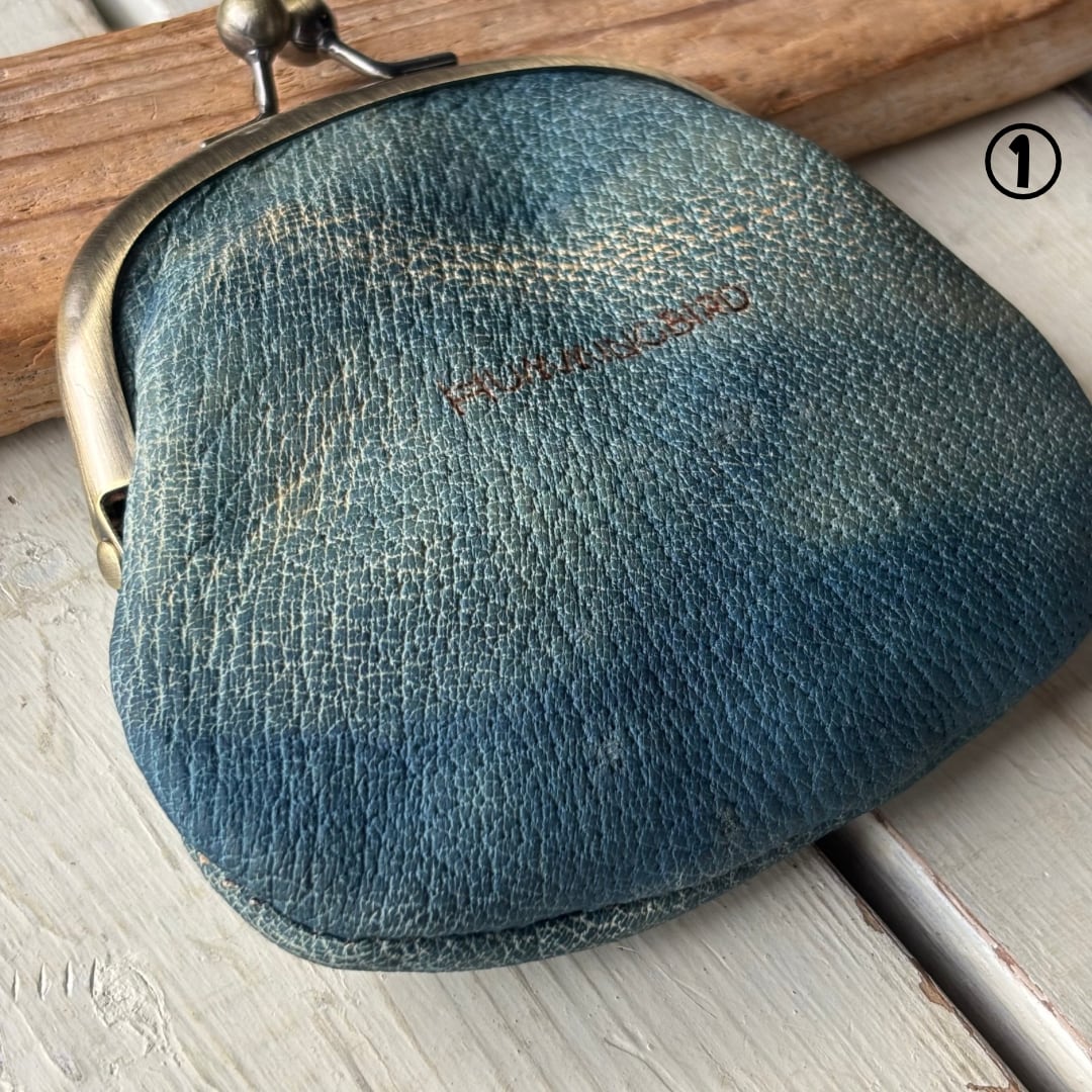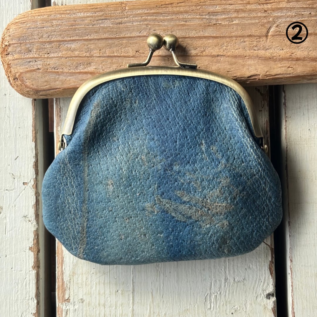 【藍染ジビエレザーのがま口財布】野生イノシシ革✴︎ジビエレザー