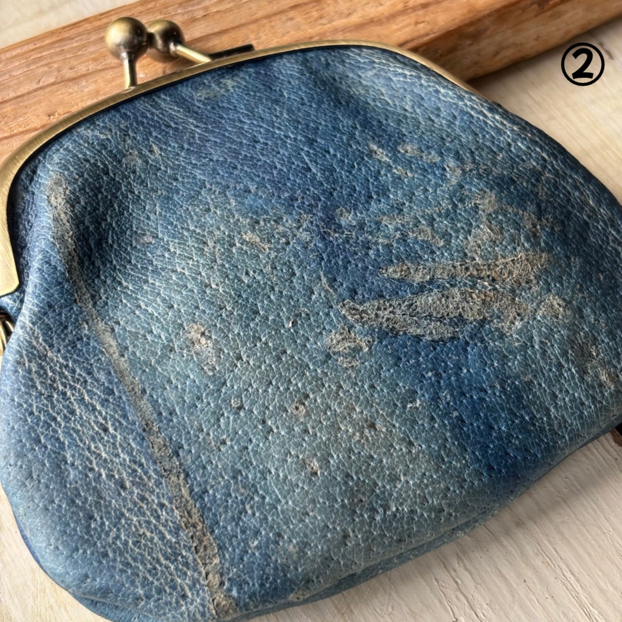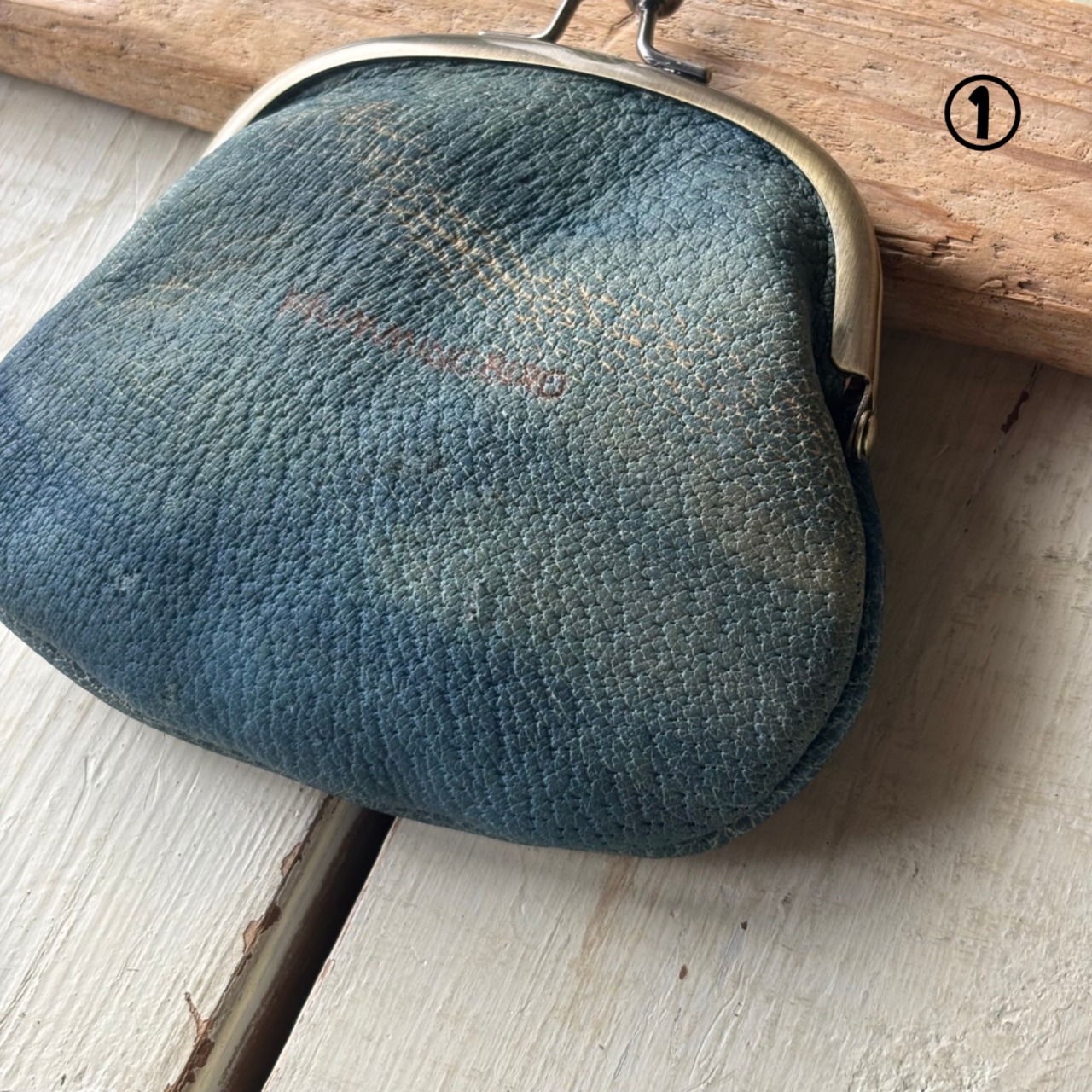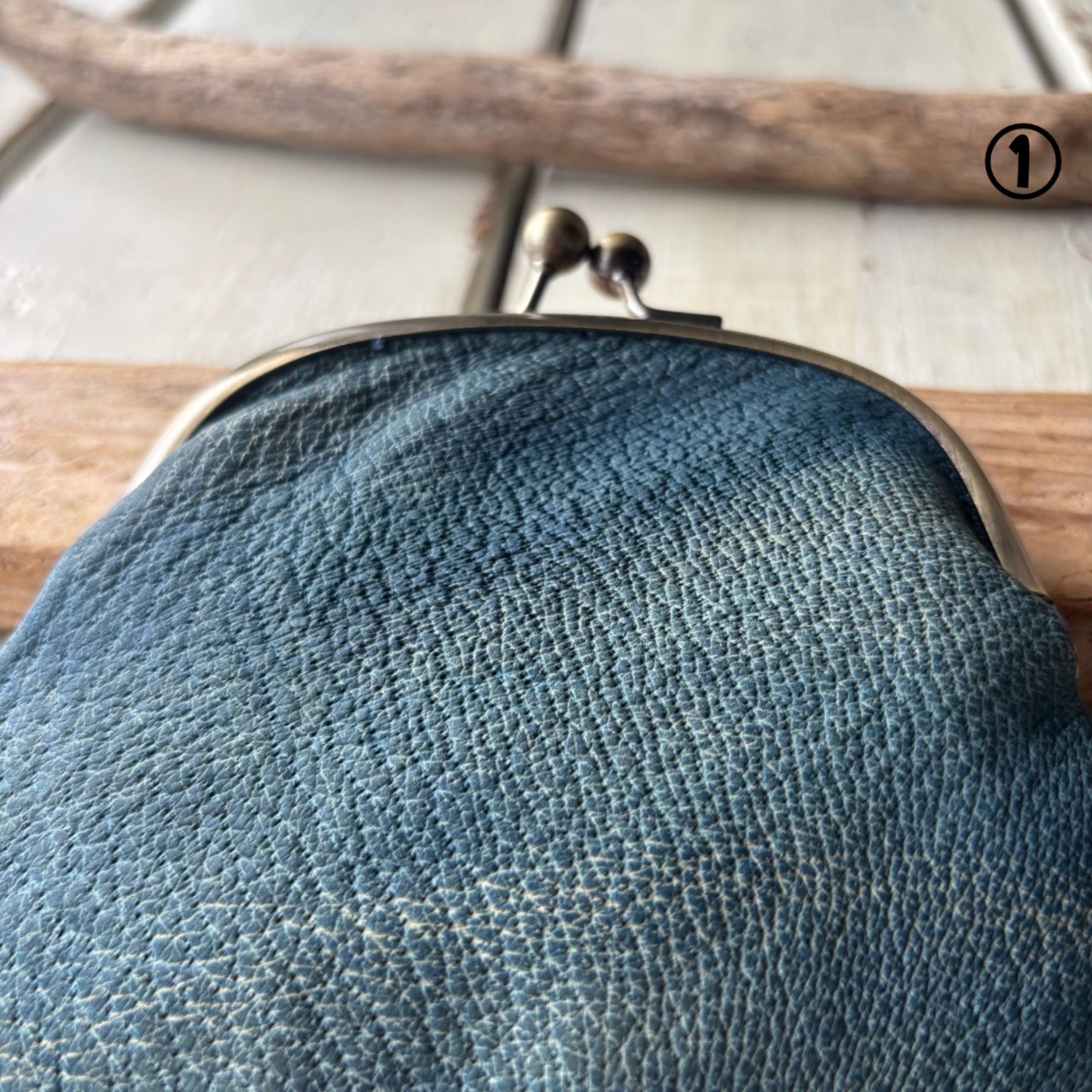 【藍染ジビエレザーのがま口財布】野生イノシシ革✴︎ジビエレザー