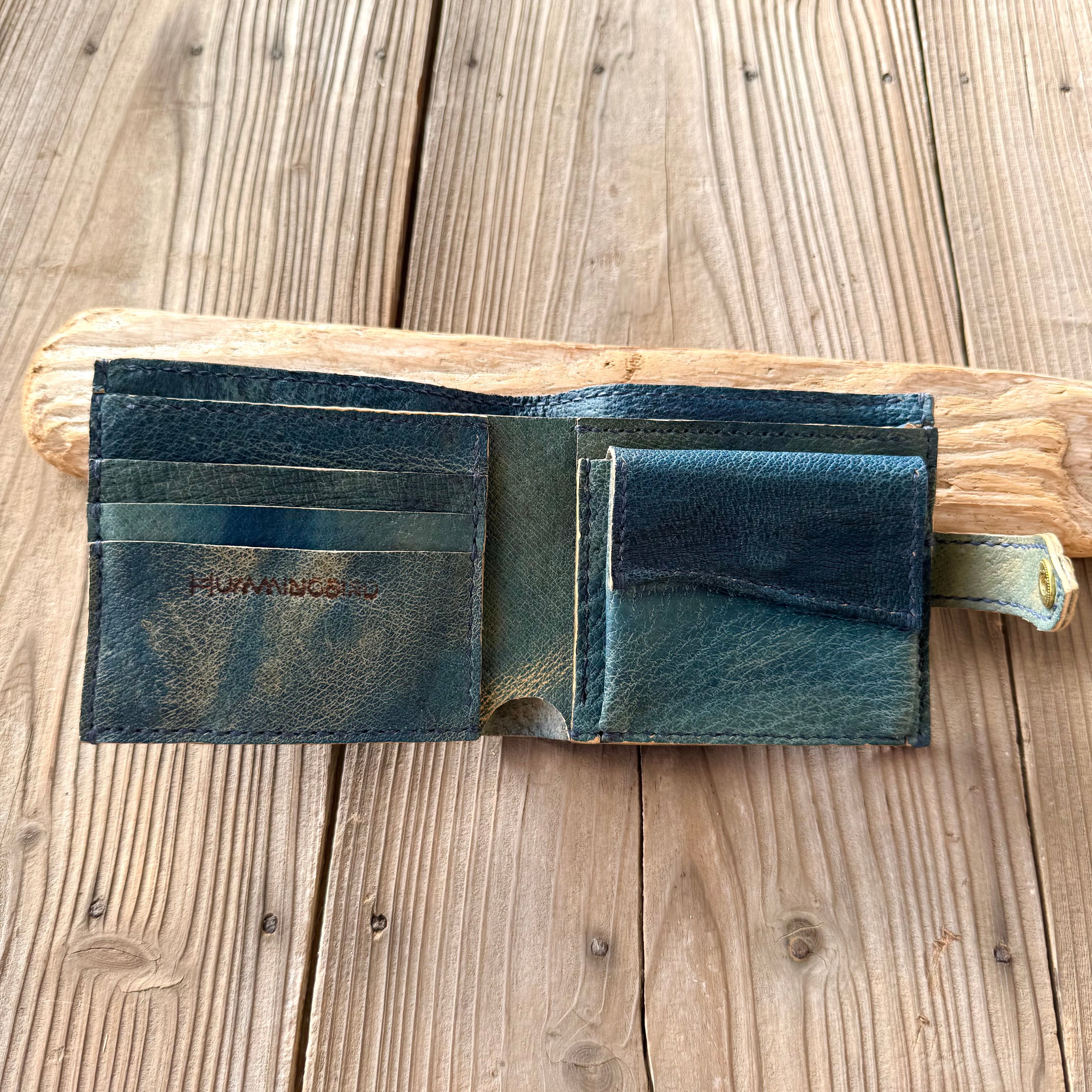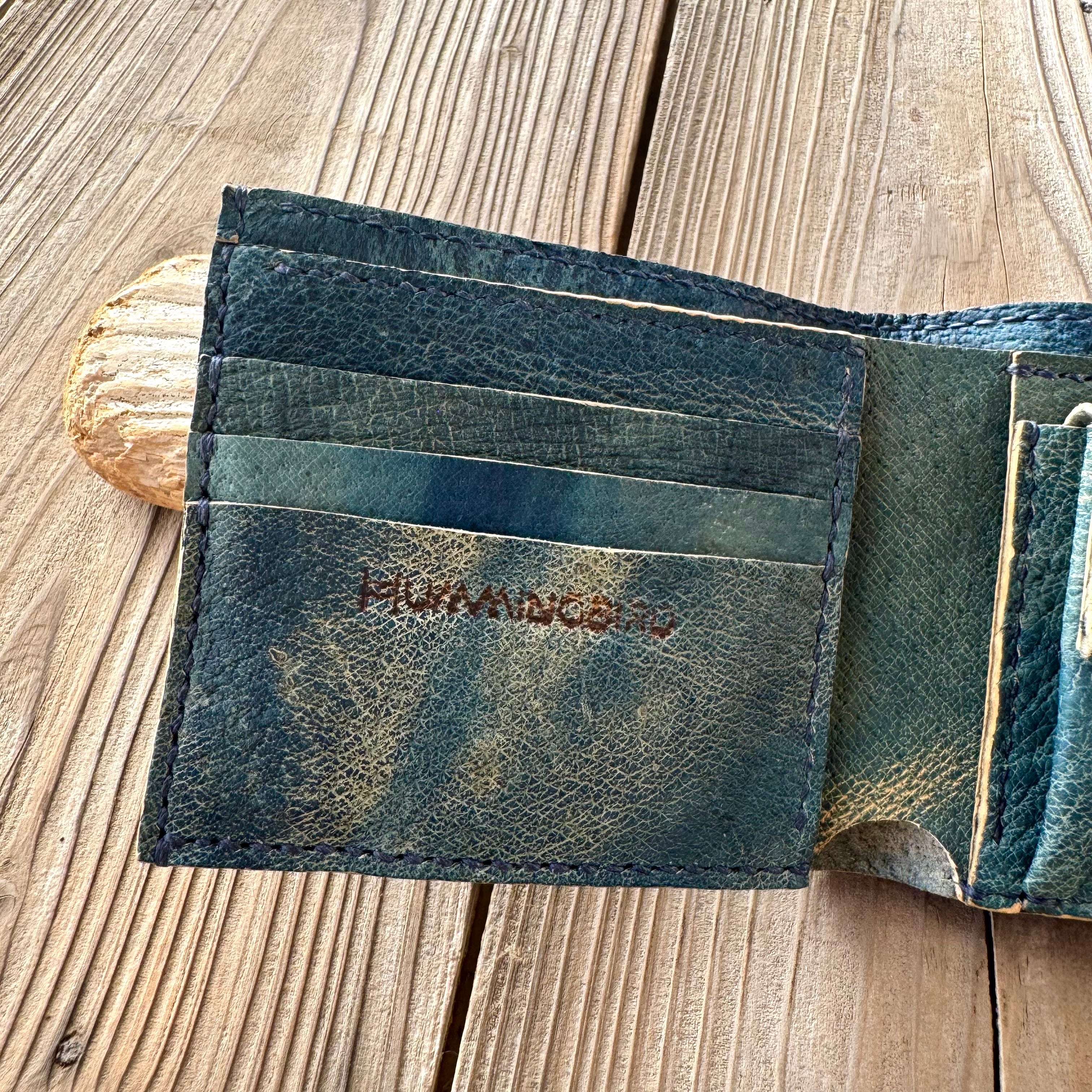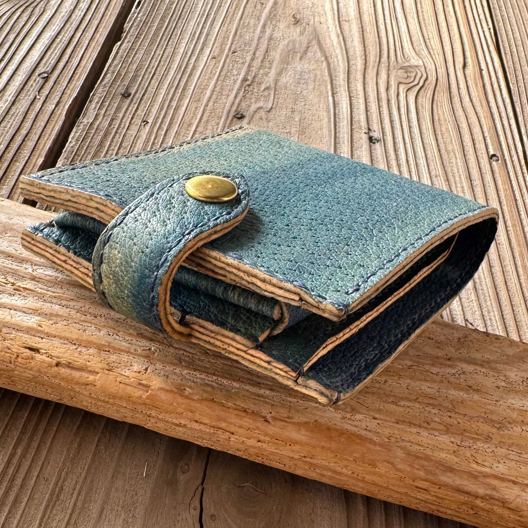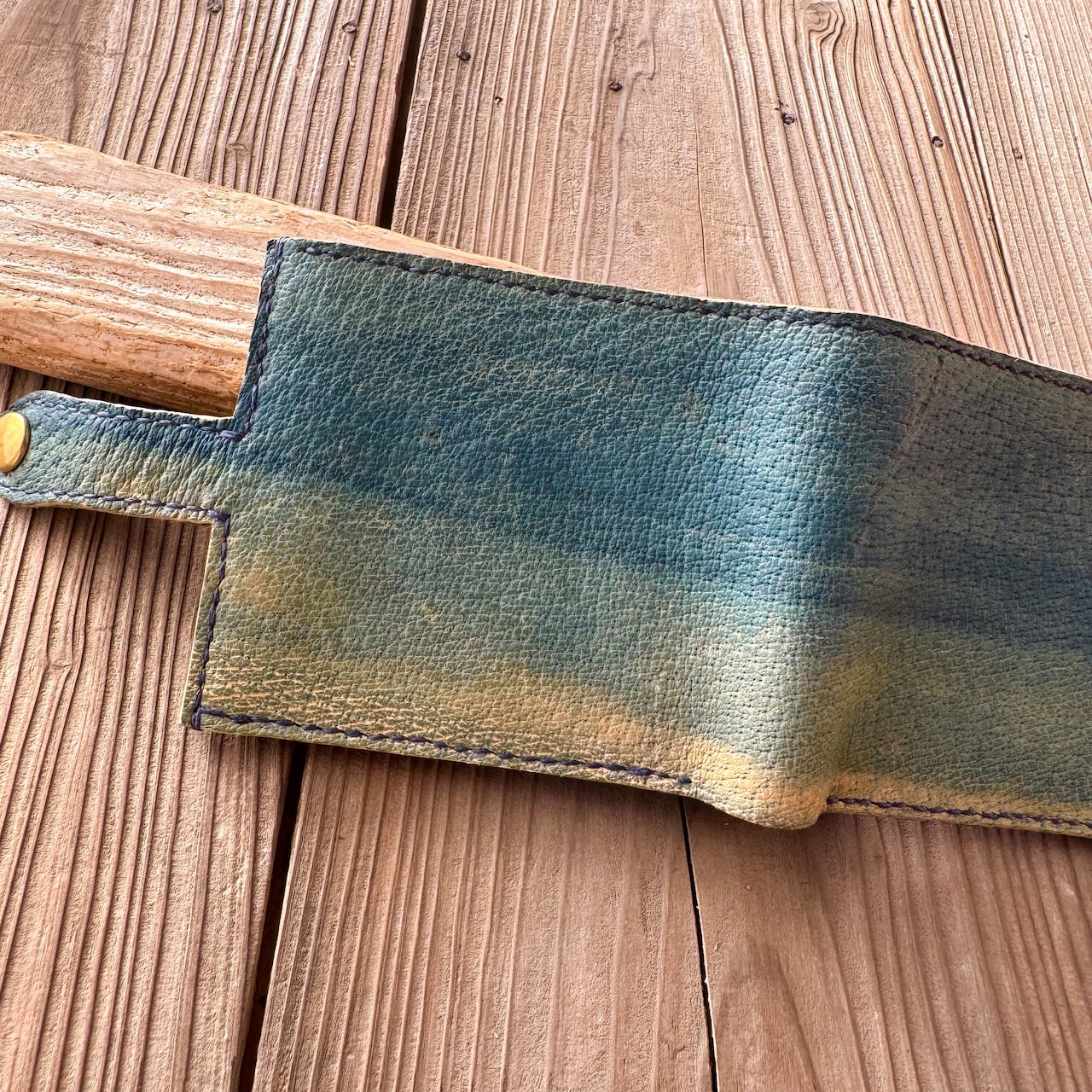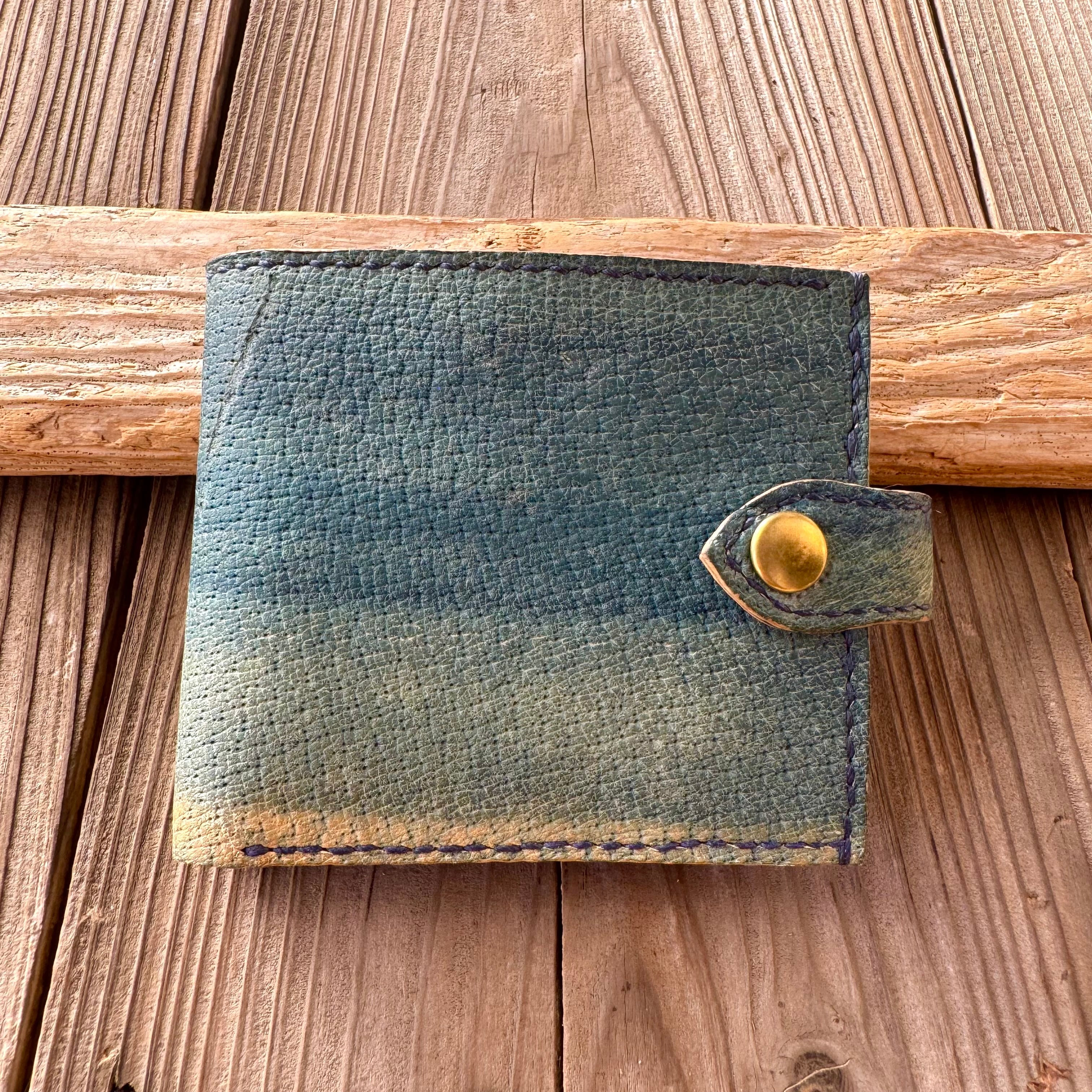 【藍手染め】クラシックな二つ折り(ジビエレザー・イノシシ革)