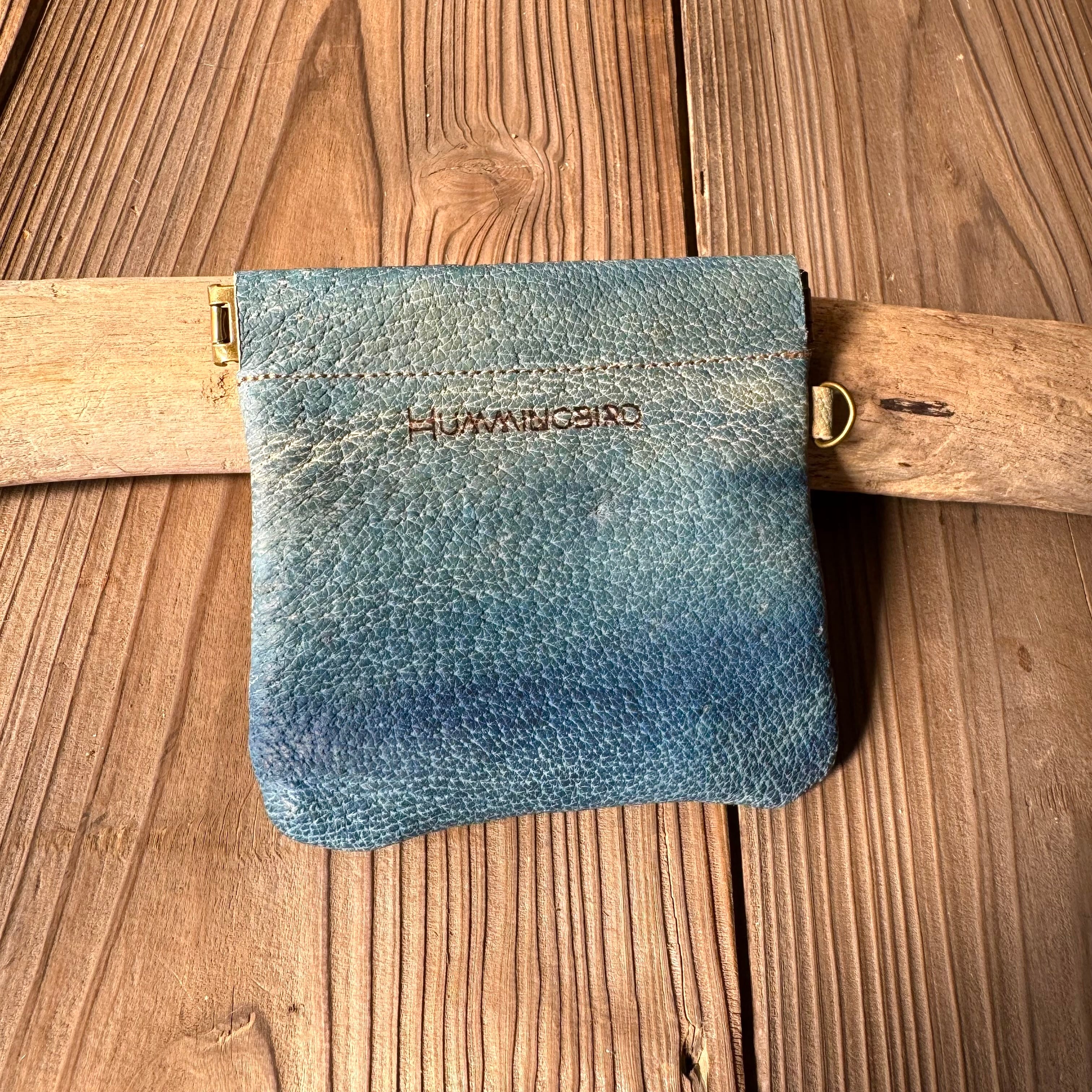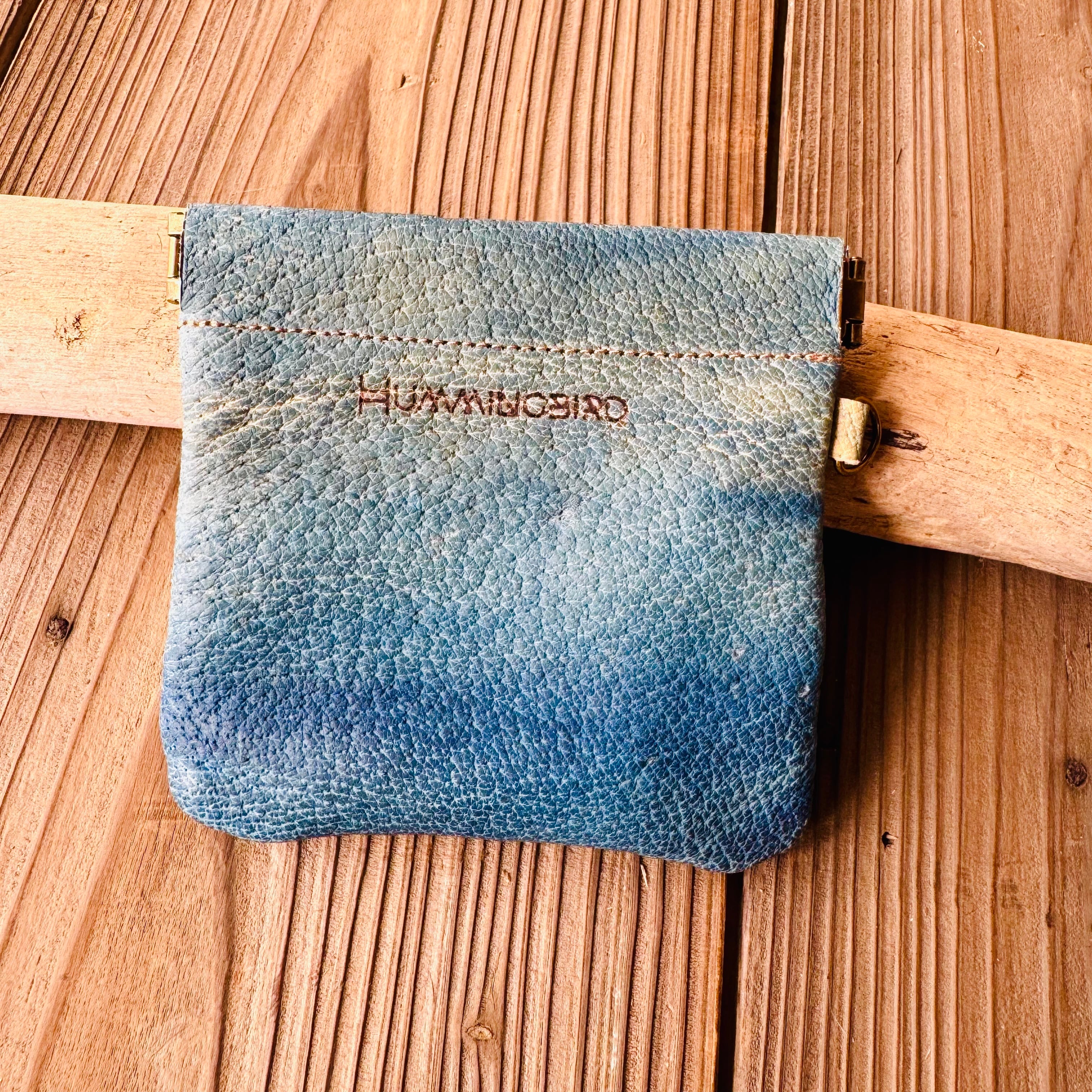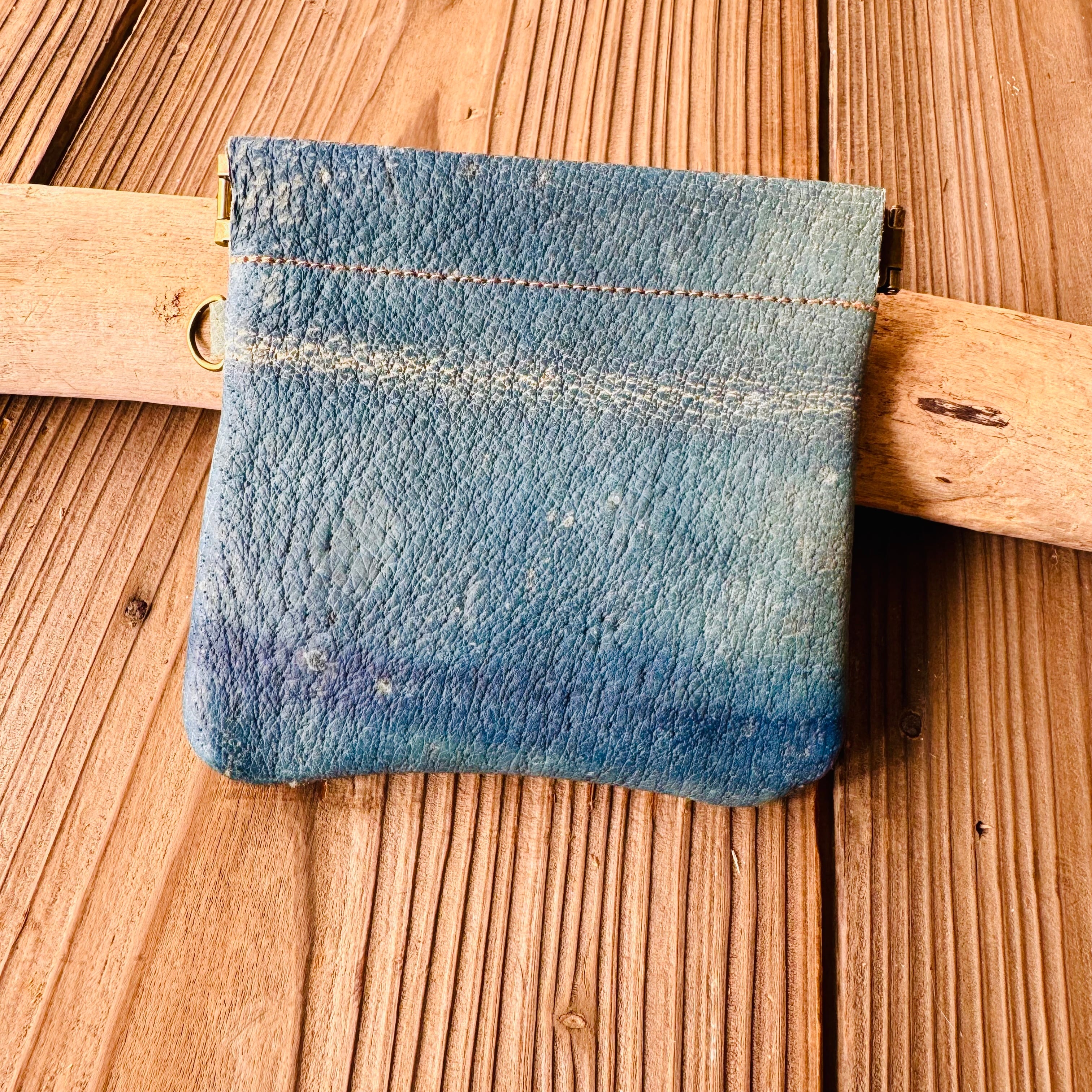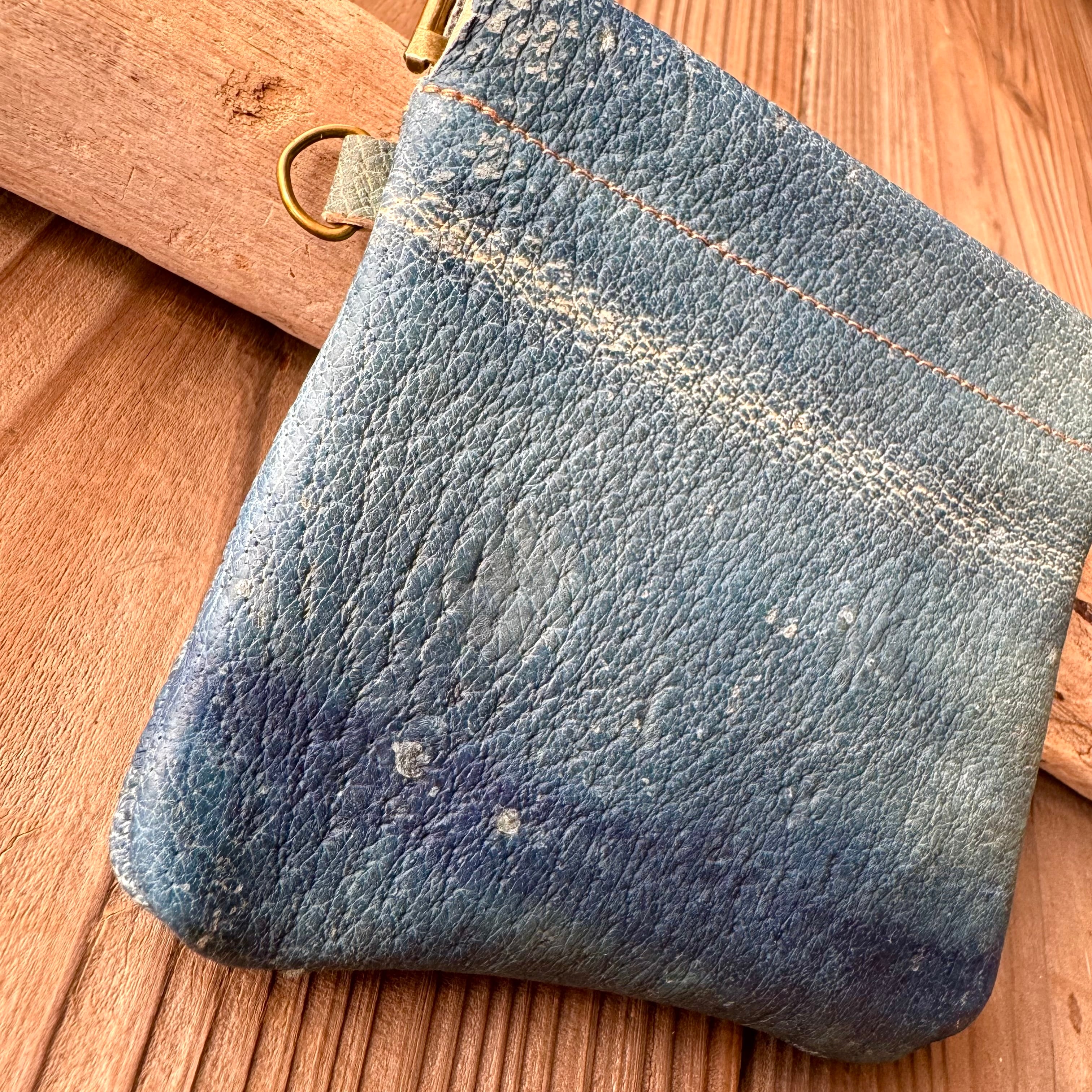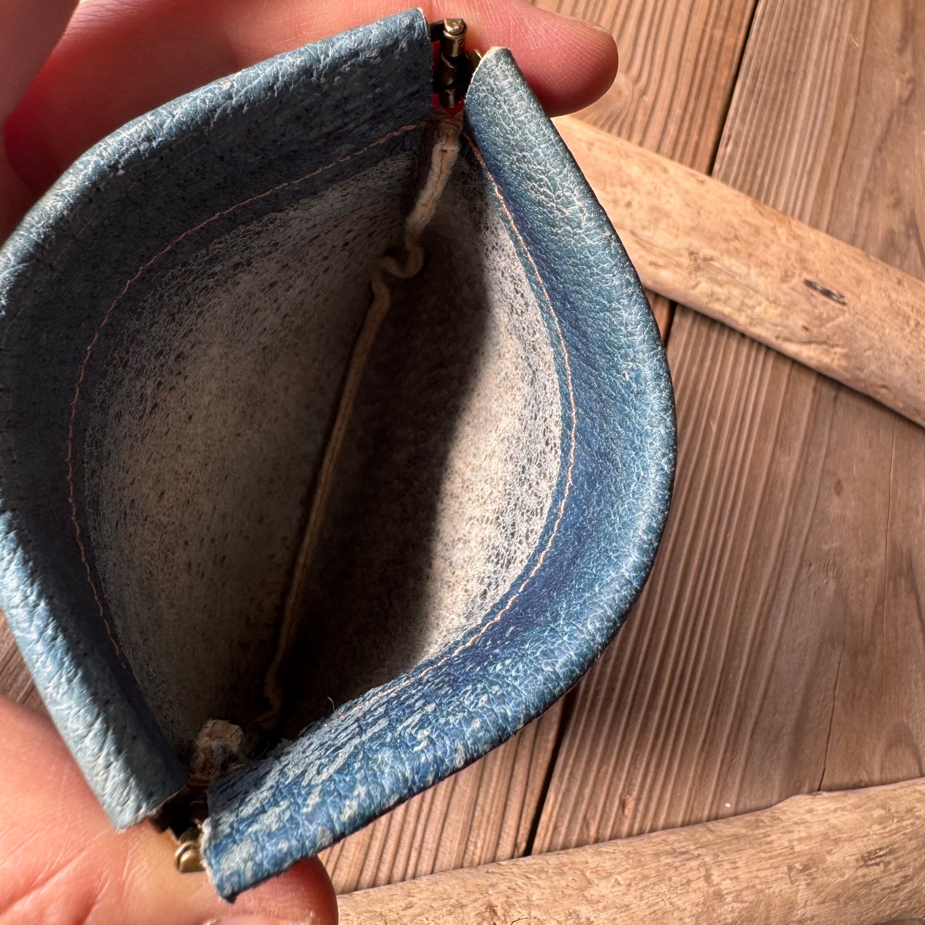 【藍手染め】バネ口のミドルポーチ(ジビエレザー・イノシシ革)
