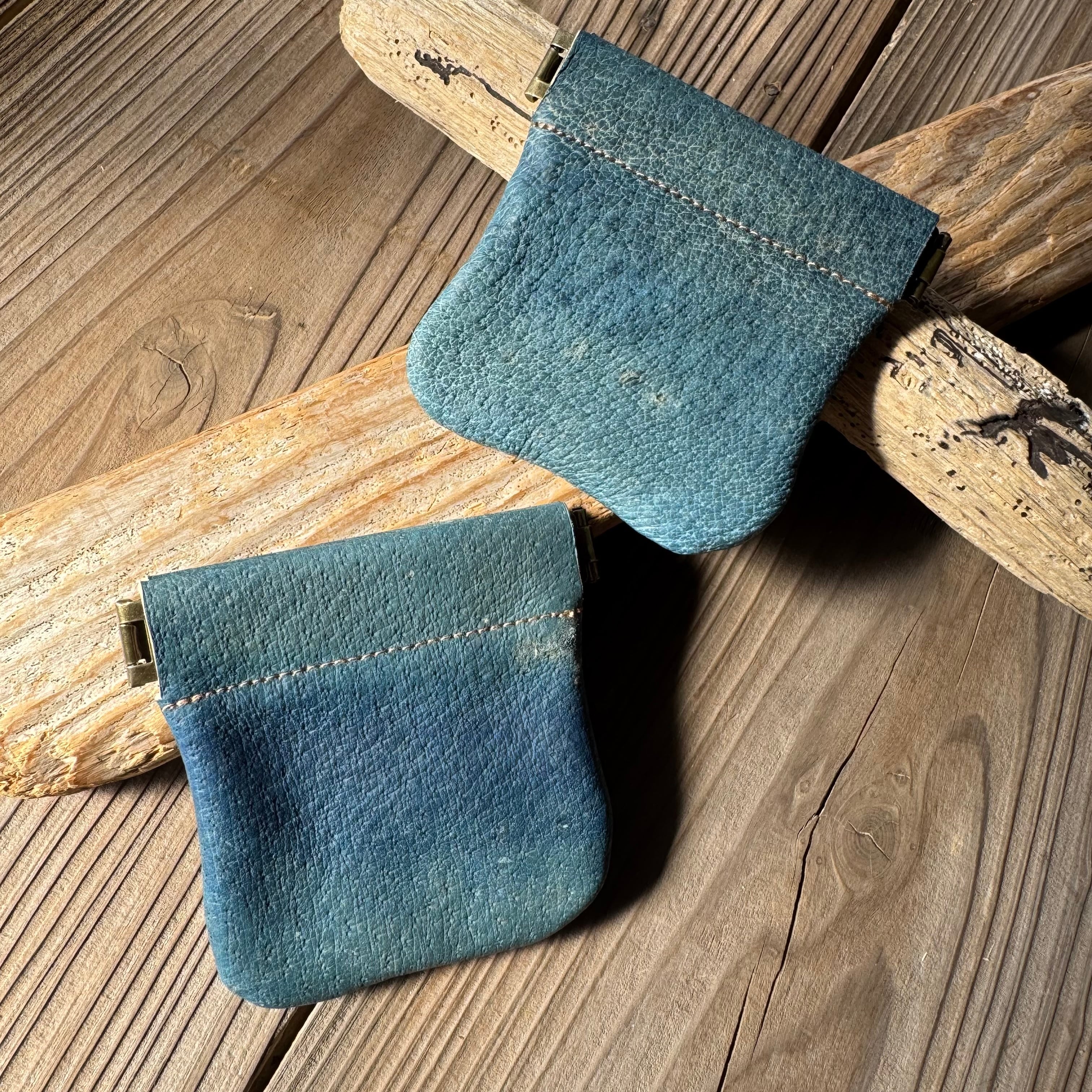 【藍手染め】バネ口のミニポーチ(ジビエレザー・イノシシ革)