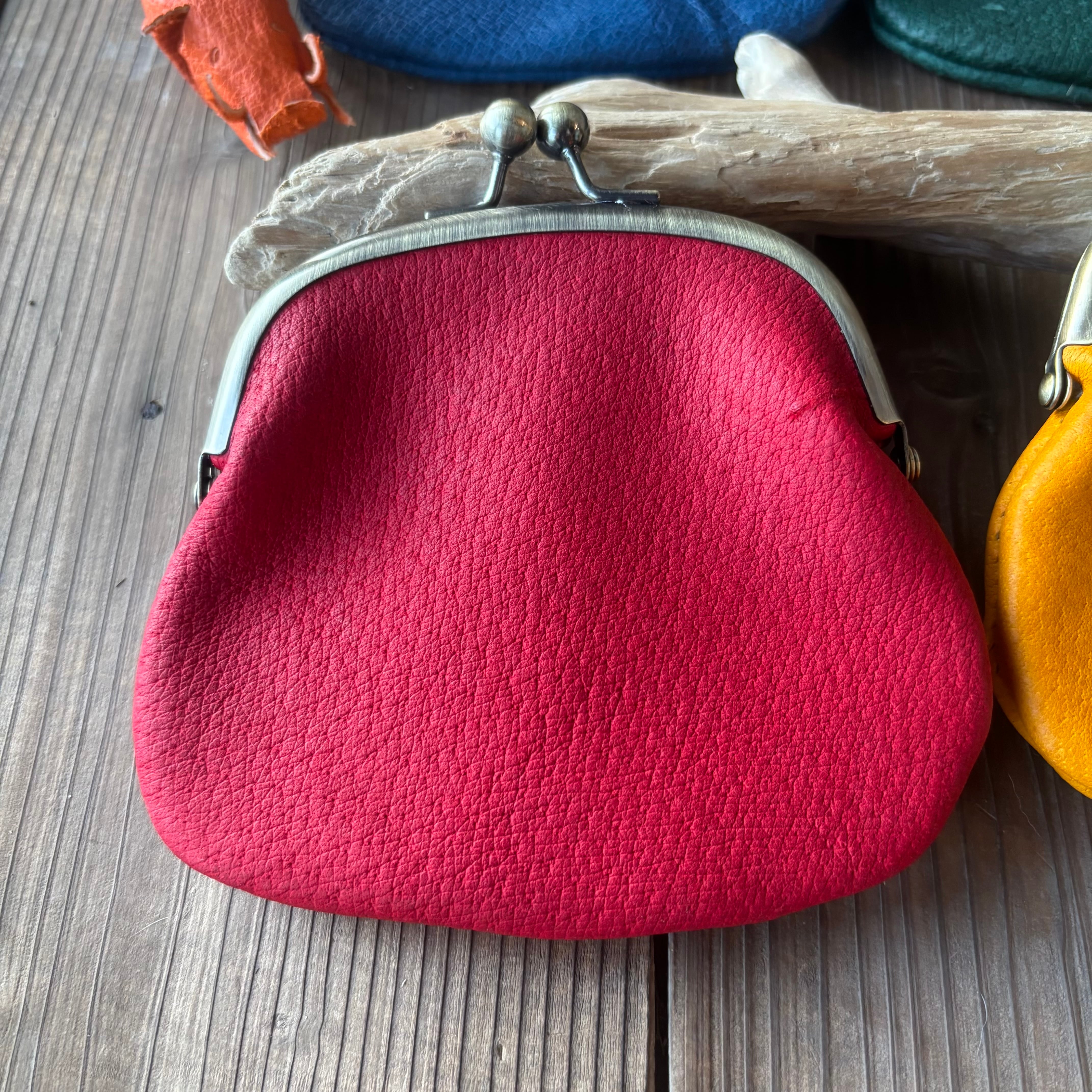 ジビエレザーの優しさが、がま口の丸いフォルムと驚くほどよく合います。