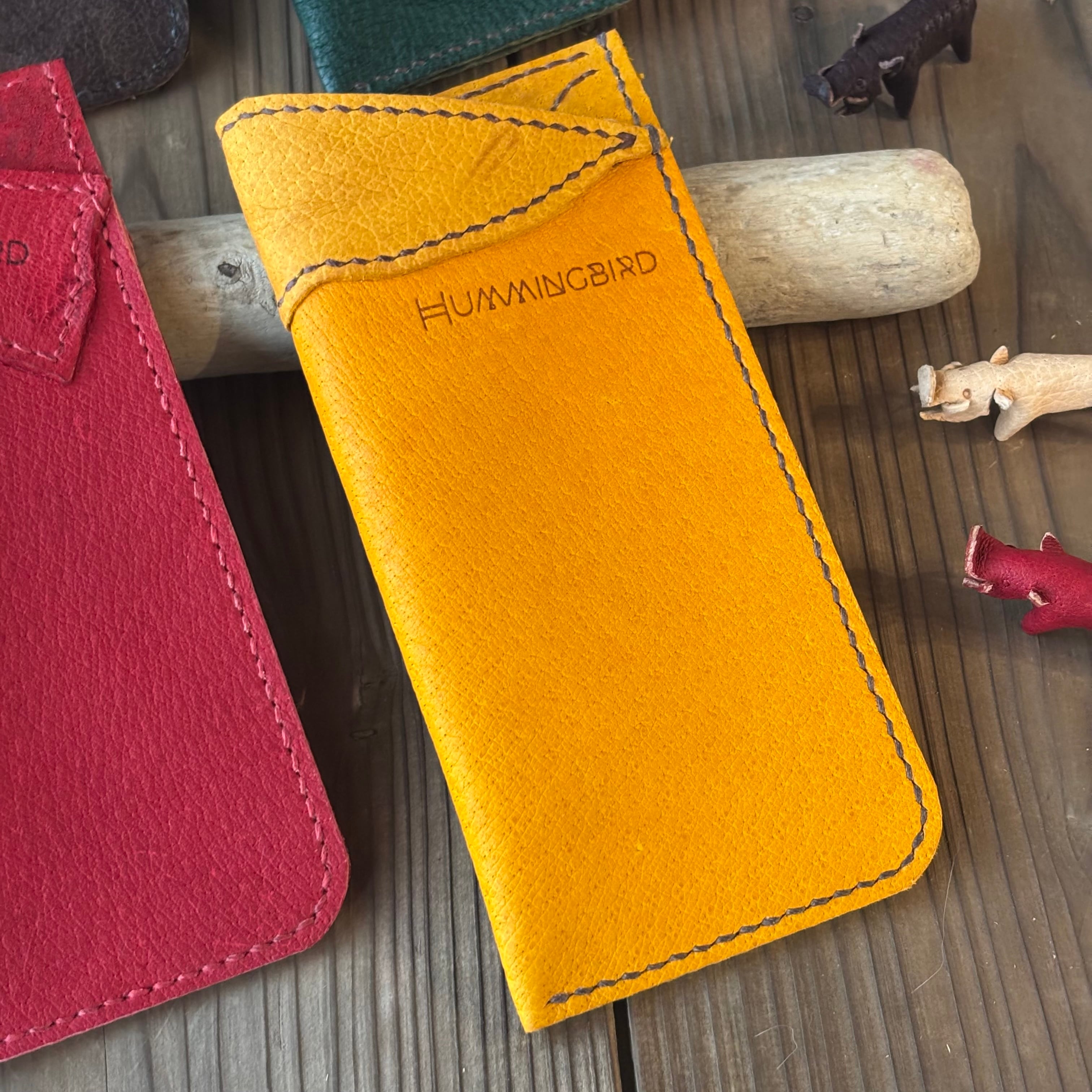 This case is made from wild boar leather sourced in Isahaya City, Nagasaki, and processed from hide to finished leather in the HUMMINGBIRD atelier.