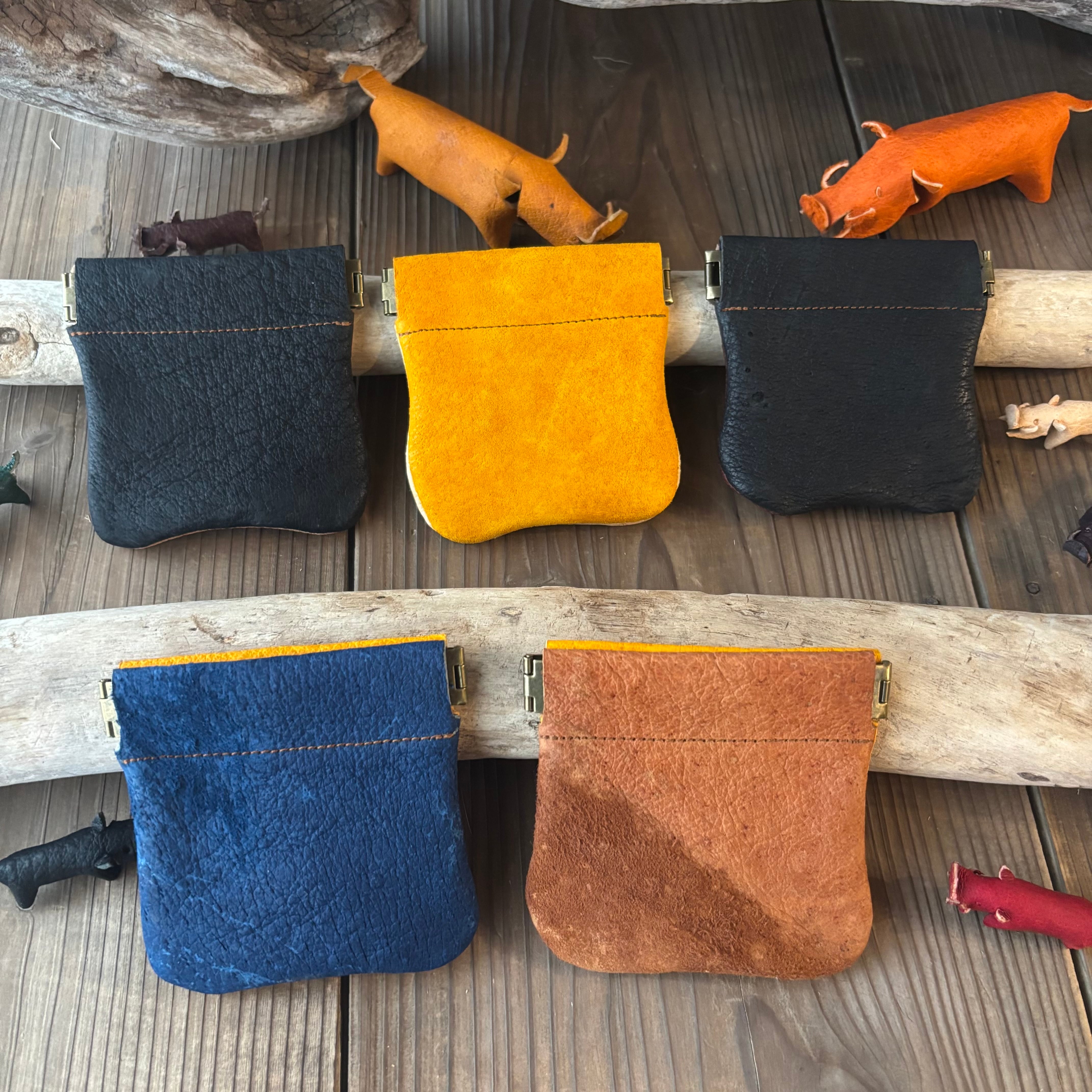 バイカラーのバネ口ミニポーチ(ジビエレザー・イノシシ革)