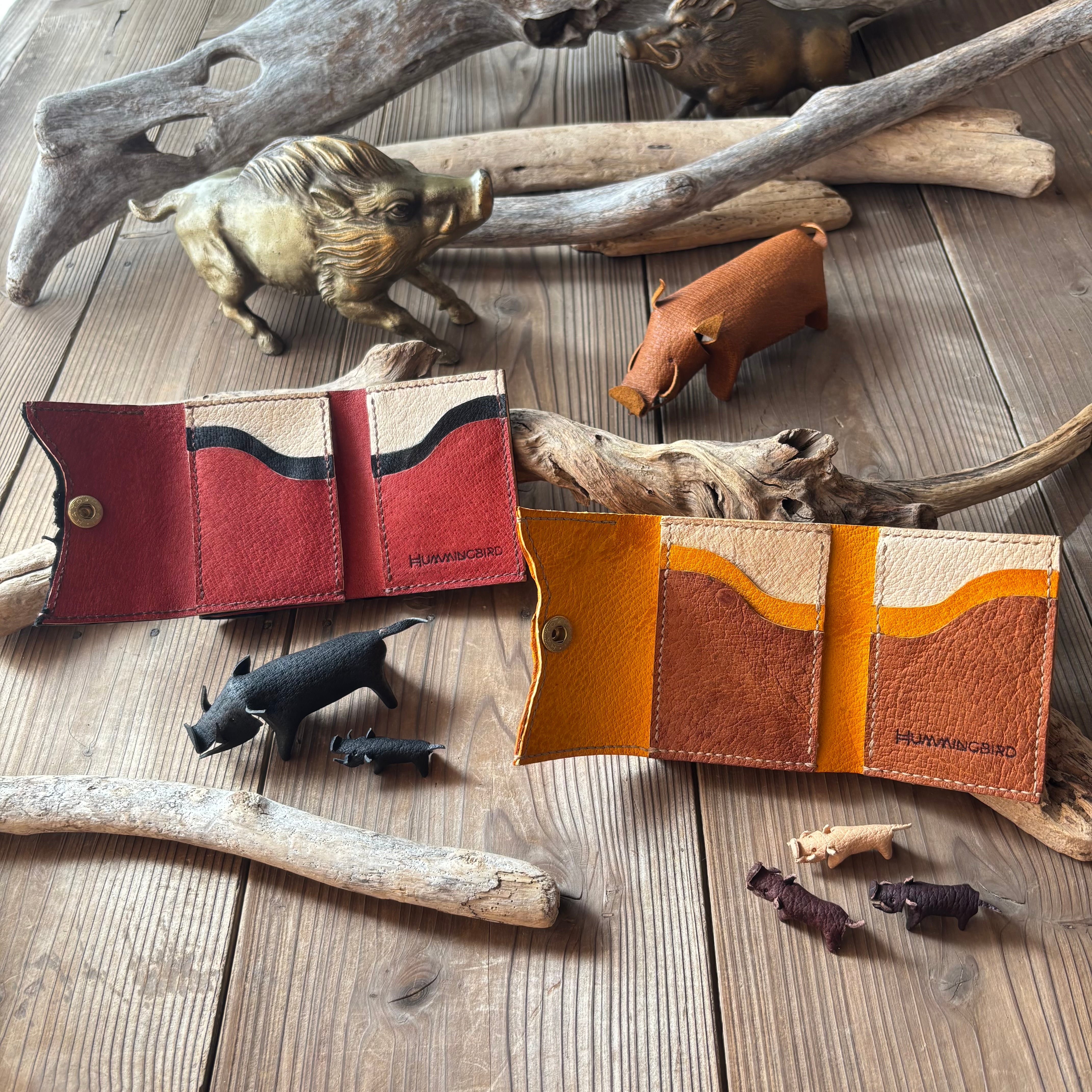 ⚪︎ジビエレザーHUMMINGBIRDでは、強度に影響のある箇所を除き、革それぞれの個性・イノシシが生きていたストーリーとしてあえて傷をそのまま使用しています。野生革の味わいとして楽しんでいただけたら幸いです。