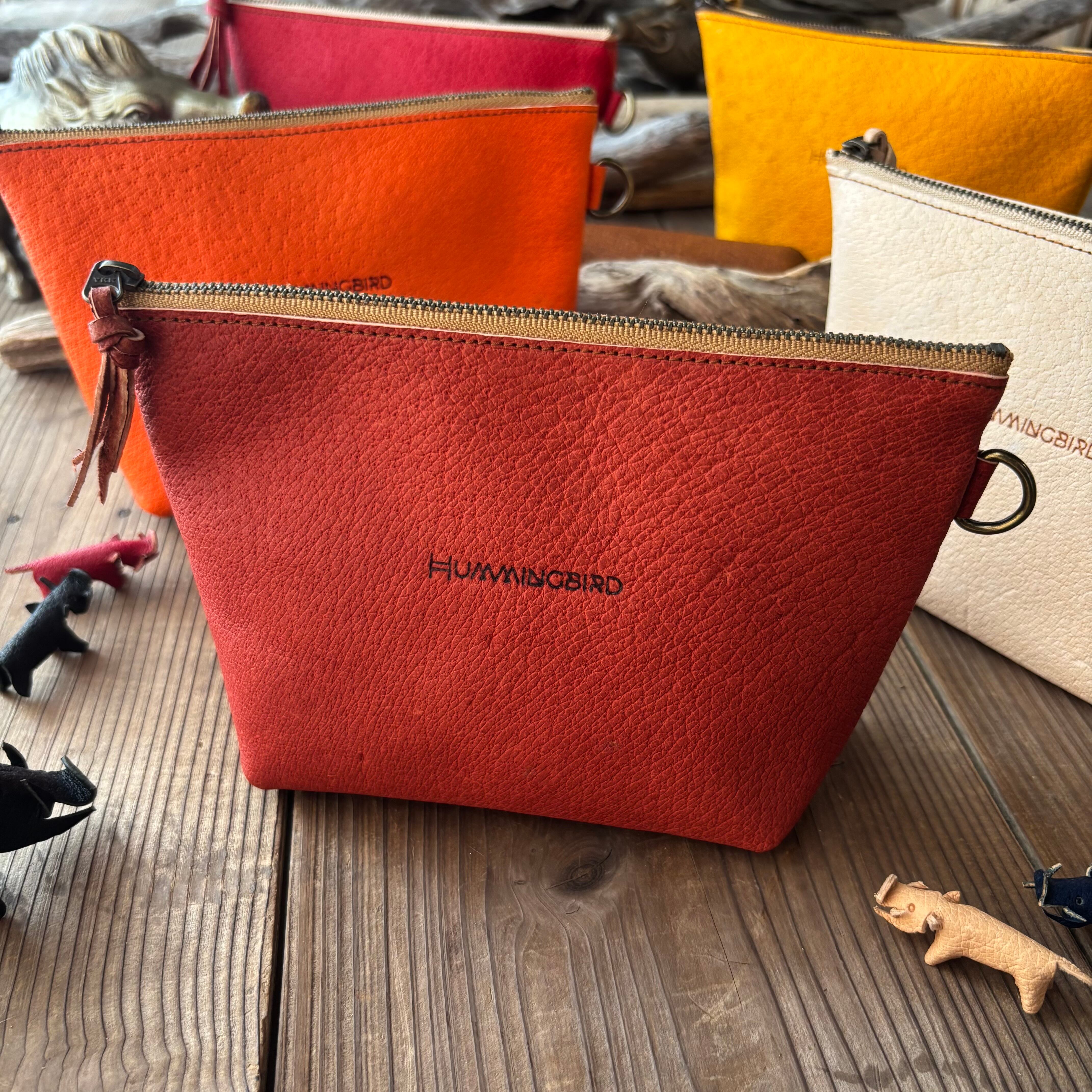 ⚪︎ジビエレザーHUMMINGBIRDで使用している革は、ミモザやアカシアを主な原料とする天然成分でなめし・染色をしており、時期や個体差によってカラーの違いなどがあります。ご了承ください。