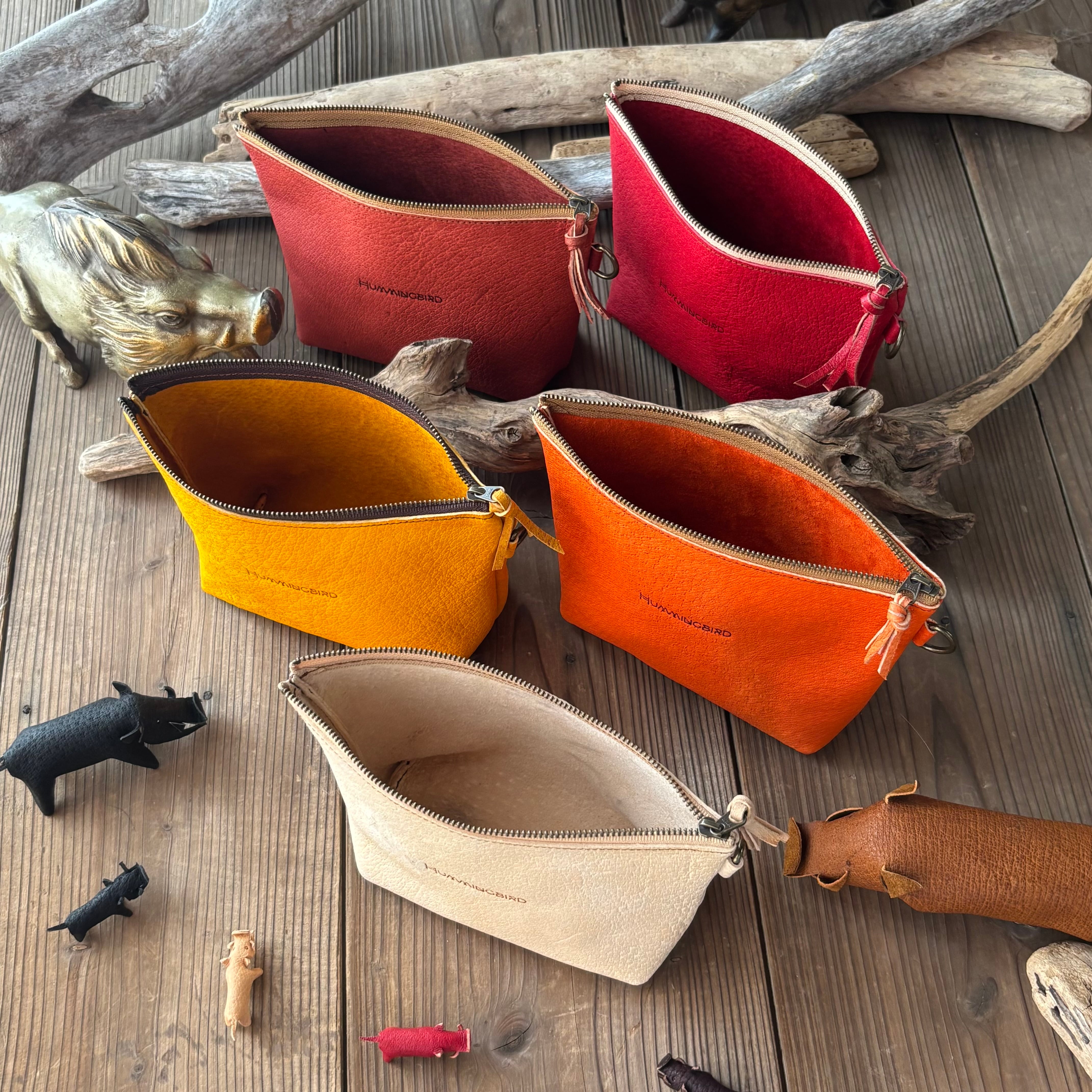 ⚪︎ジビエレザーHUMMINGBIRDでは、強度に影響のある箇所を除き、革それぞれの個性・イノシシが生きていたストーリーとしてあえて傷をそのまま使用しています。野生革の味わいとして楽しんでいただけたら幸いです。