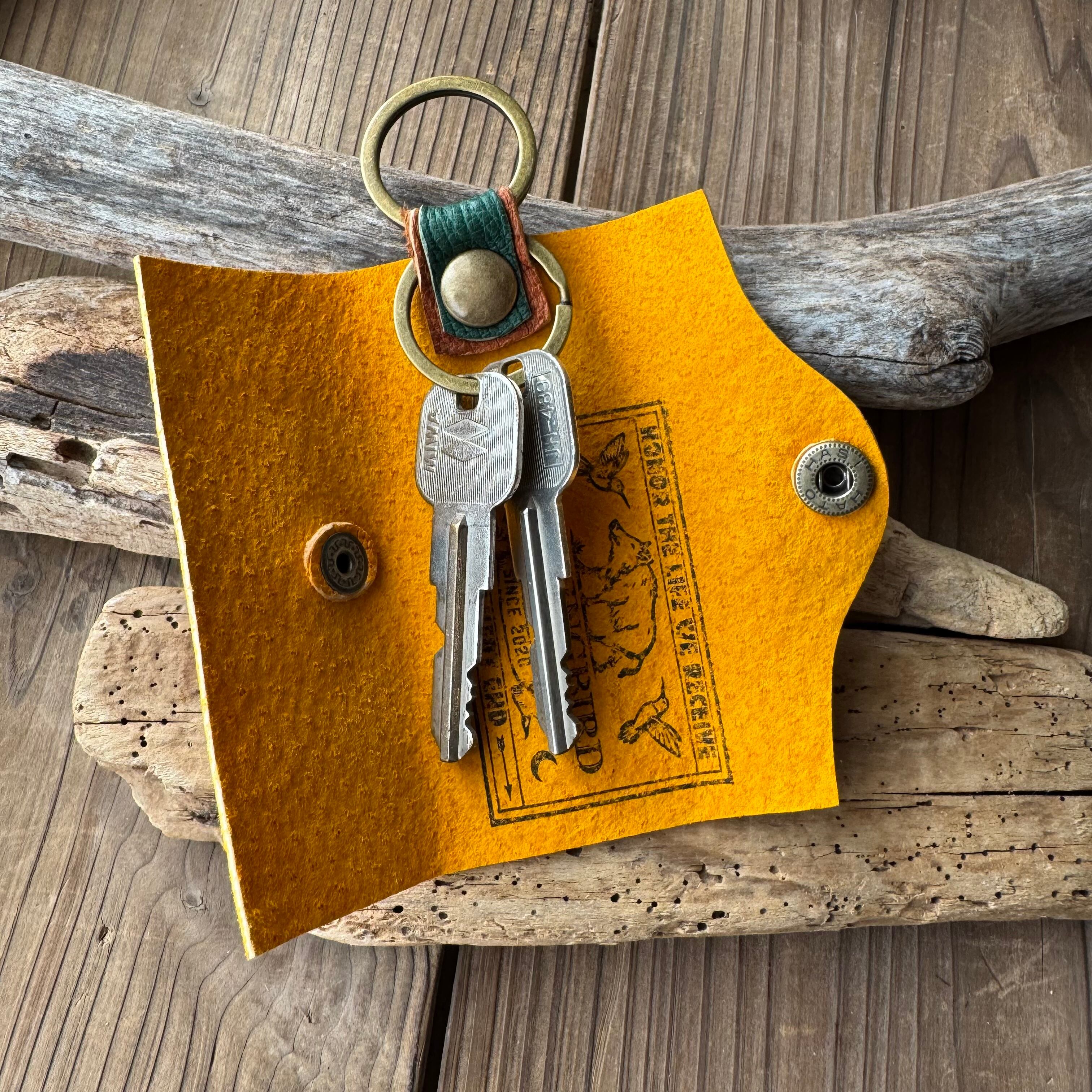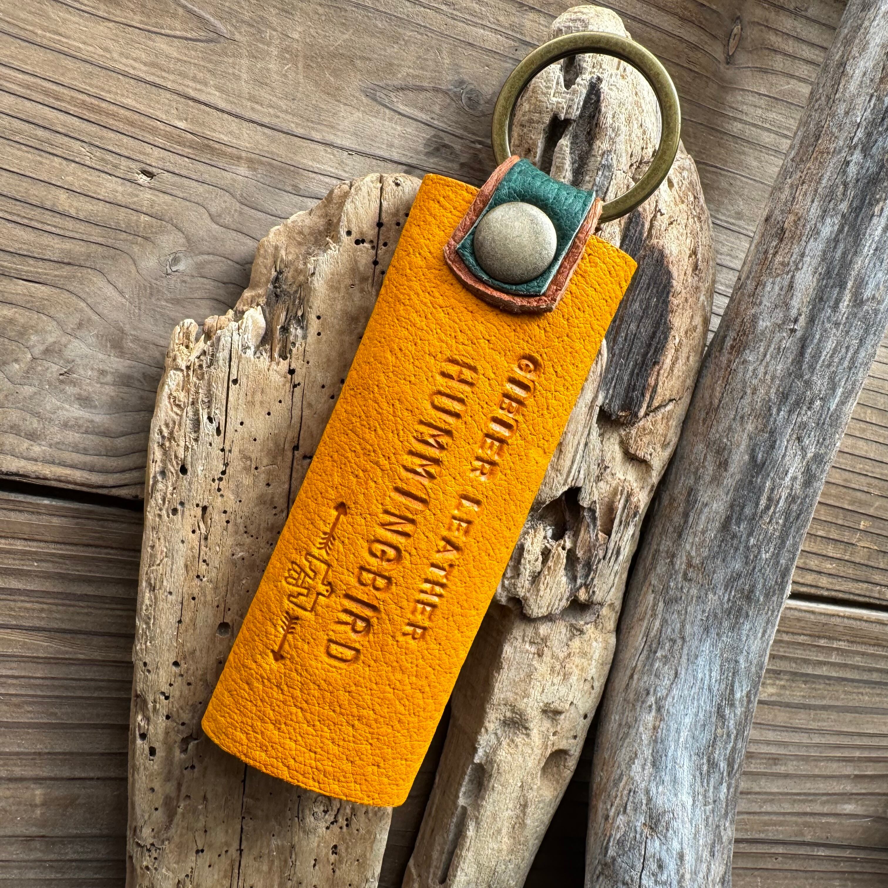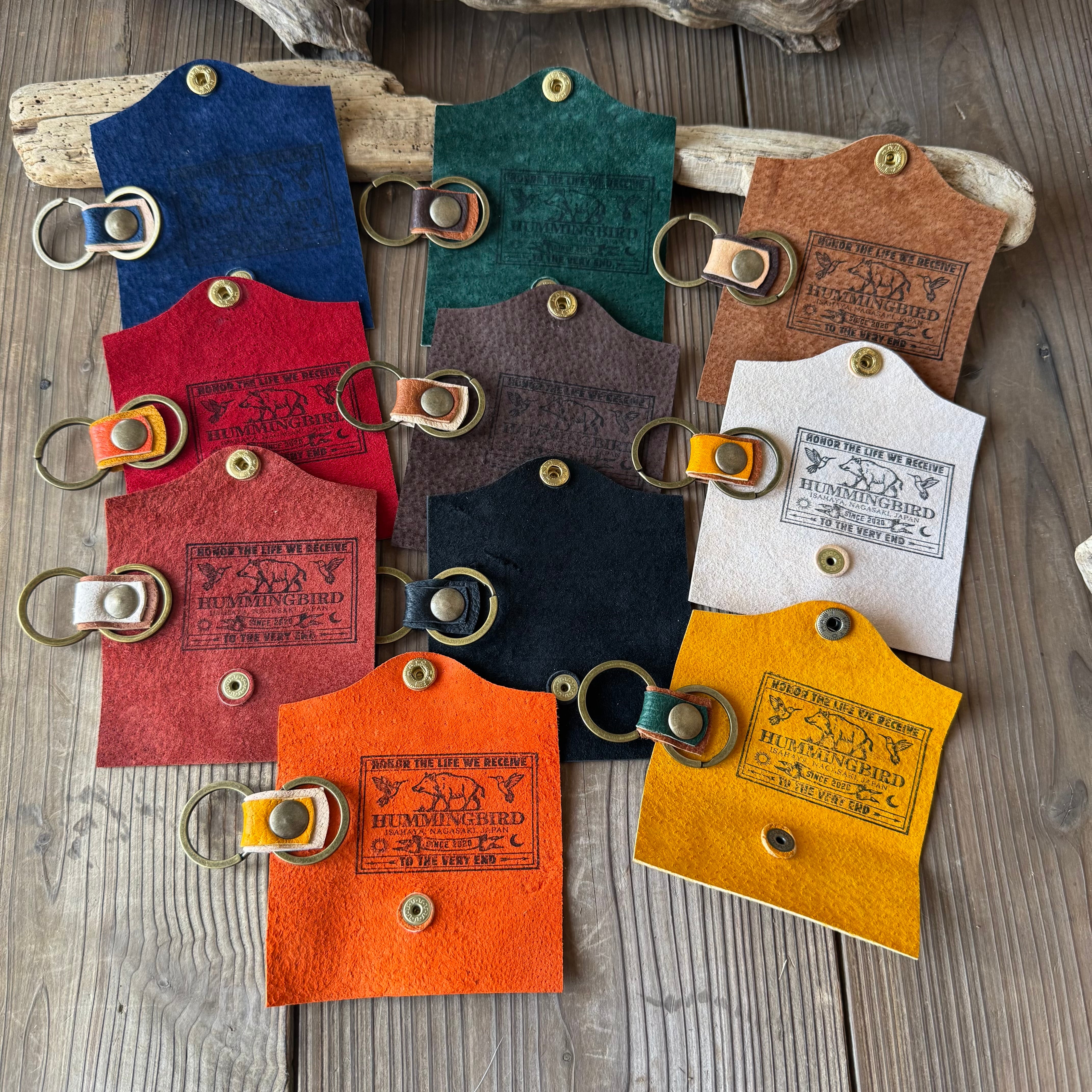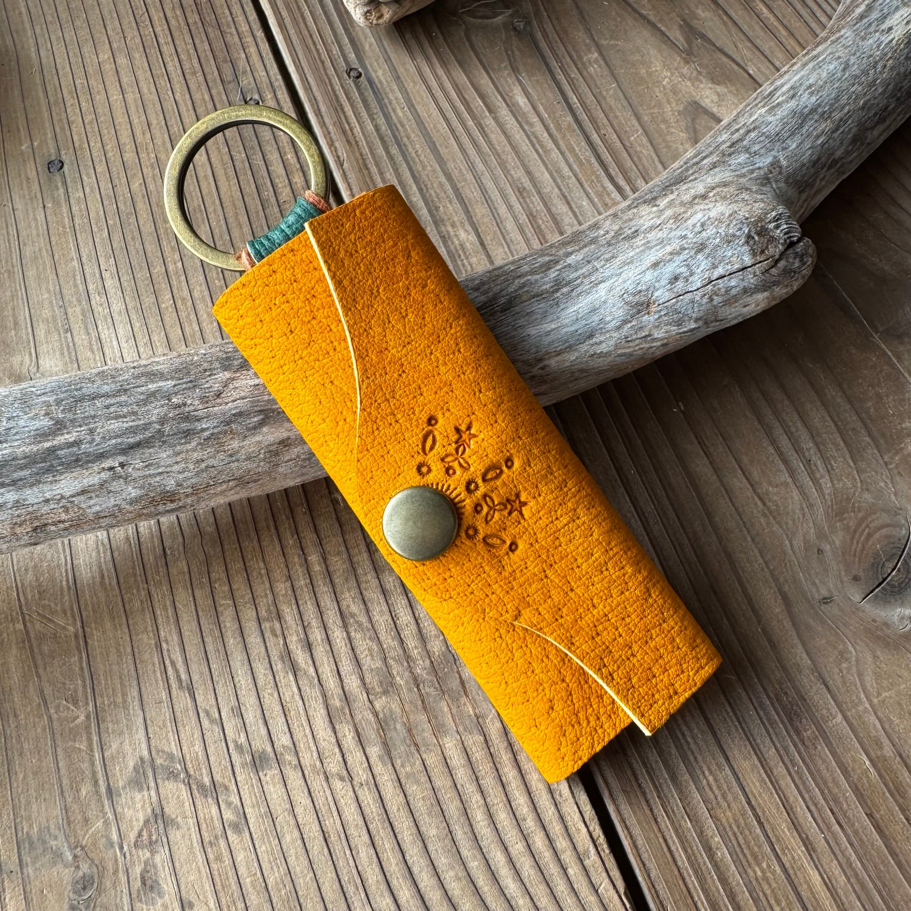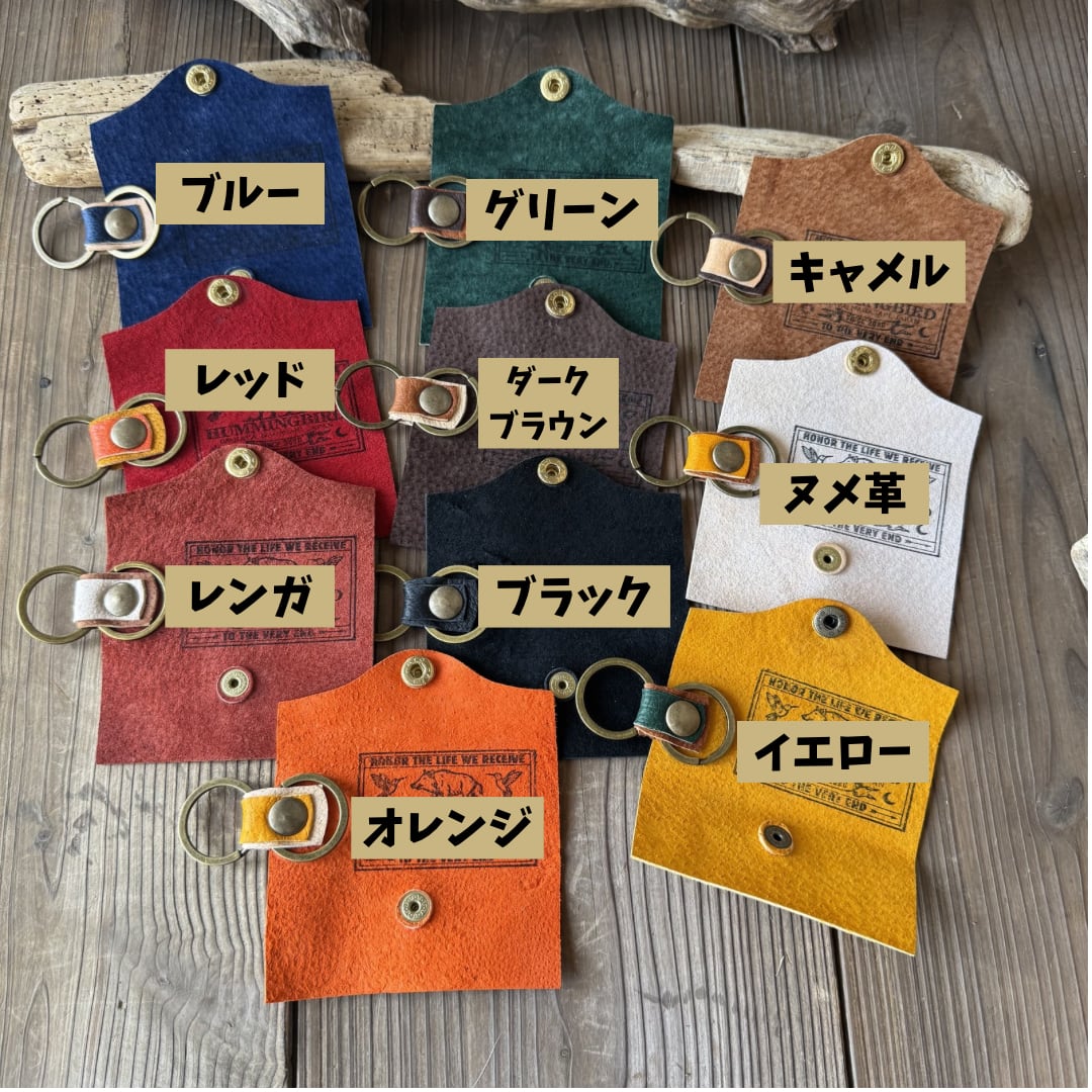 ・入れる場所は写真にある、イエローのキーケースの【HUMMINGBIRD】と入っている部分となります(外側の中心部)