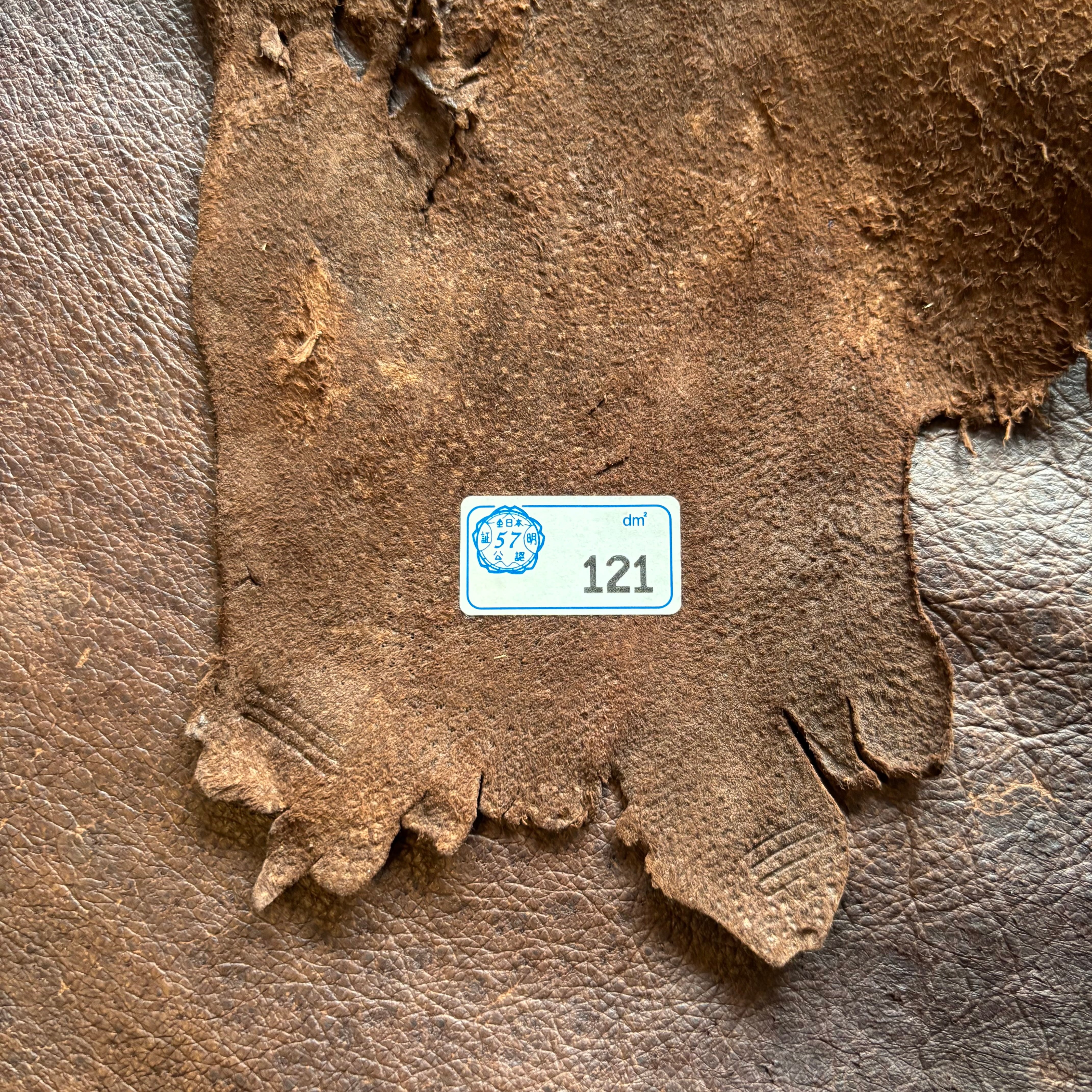 こちらは長崎県東彼杵郡から託された野生イノシシのジビエレザー