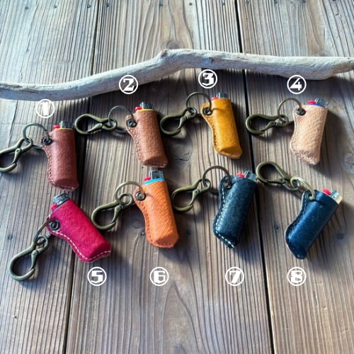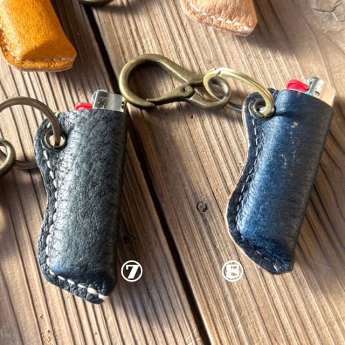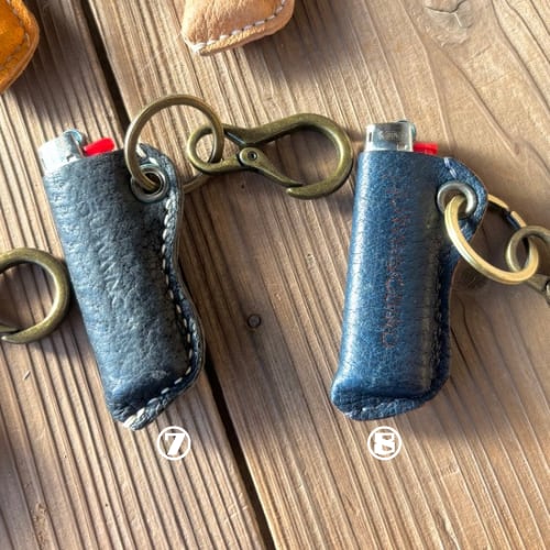 This is a BIC J23 lighter case crafted from gibier leather (wild boar leather) and finished with entirely hand stitching.